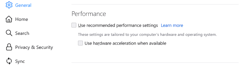- Uncheck Use recommended performance settings. Additional settings will appear.