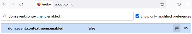 . - Once the contextmenu event appears in the list, toggle it to to "false".